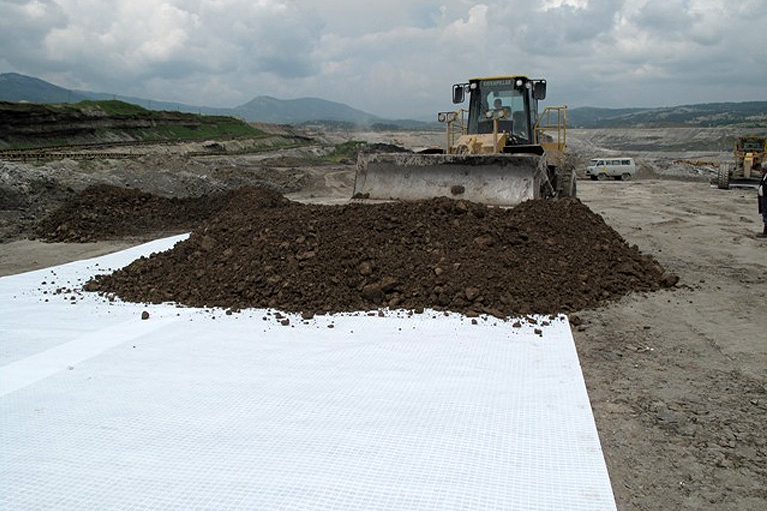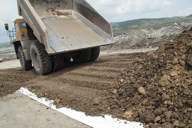 Izgradnja transportne poti. Armiranje slabonosilnih tal pod visokimi obremenitvami.